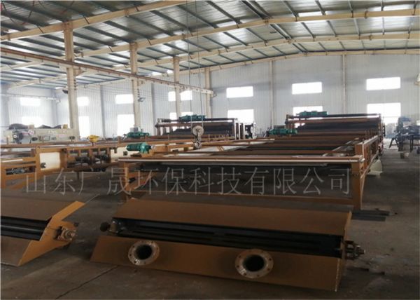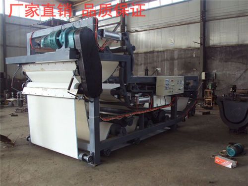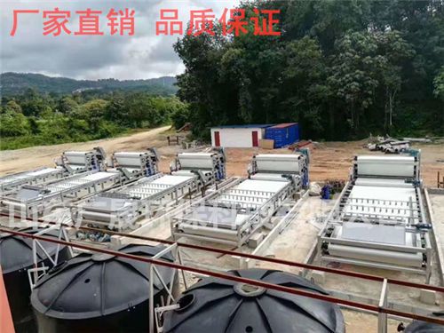 泥浆脱水设备通过两条滤带缠绕在一系列顺序排列、大小不等的辊轮上,利用滤带间的挤压和剪切作用,来脱除料浆中水分的一种压滤设备,具有着能连续作业、自动化程度高、节能、使用维护方便等优点,是一种进行污泥脱水减量化处理的理想设备。