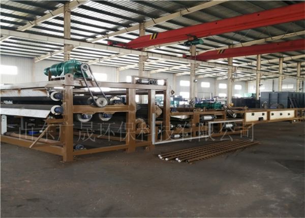 污泥浓缩脱水设备将含水污泥,经污泥泵输送至污泥搅拌罐,同时投加凝聚剂进行充分混合反应,而后流入带式污泥压滤机的布泥器,污泥均匀分布到重力脱水区上,并在泥耙的双向疏导和重力作用下,污泥随着脱水滤带的移动,迅速脱去污泥的游离水。