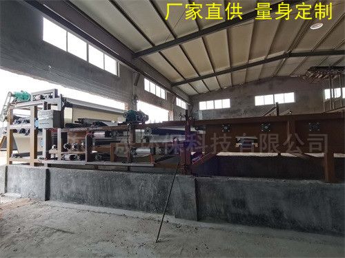 人造石泥浆脱水带式压滤机是利用滤布进行重力脱水、挤压脱水、高压脱水的泥水分离设备,也就是对污泥施加一定的压力,使混合液中的固体提取出来,实现固、液分离,简单来说就是把污泥中的固体泥和水分离开来,使固体泥含水率达到国家环保标准。